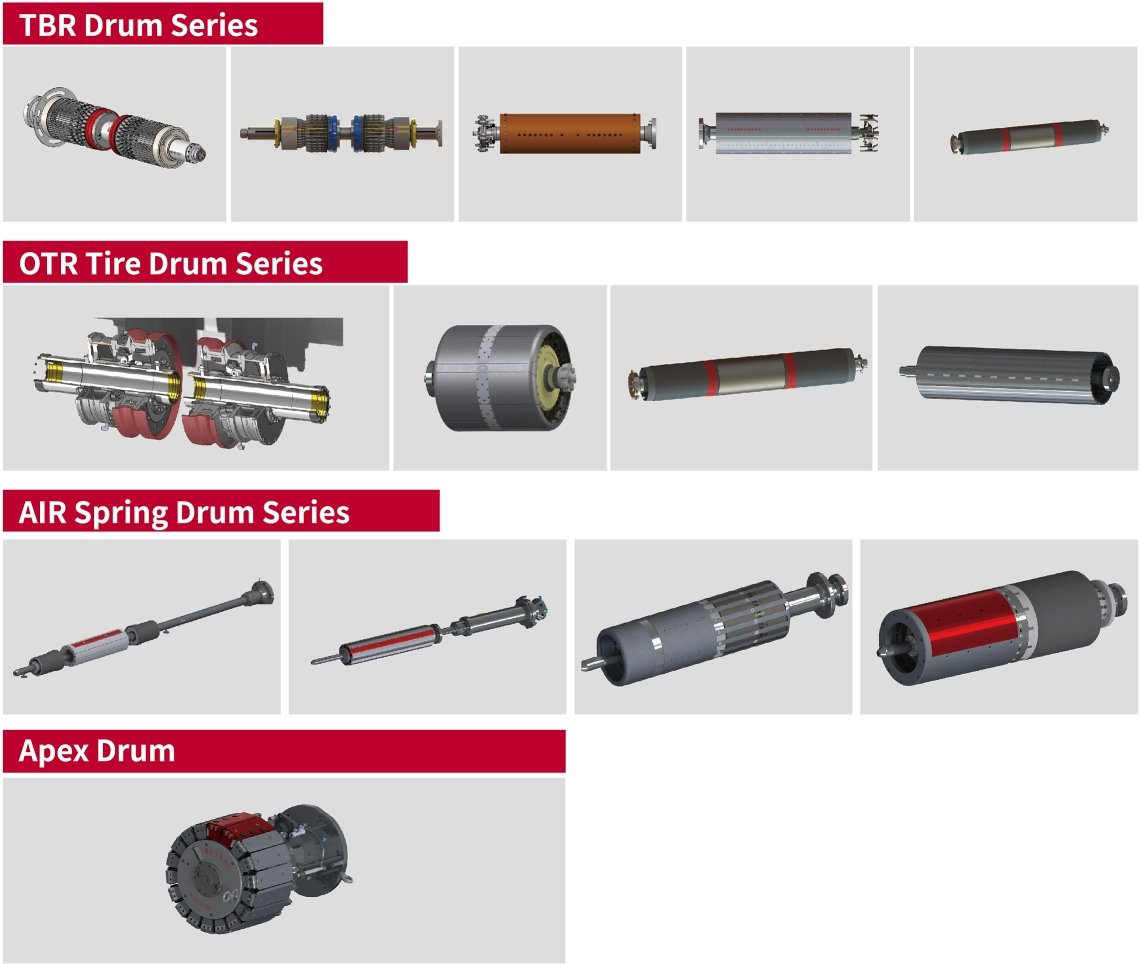 Shaping drum as the core component of TBM, MESNAC has more than 20 years' experience for R&D and manufacturing Now we have more than 160 types of shaping drum which includes PCR drum, TBR drum, OTR drum, AT drum, MT drum and Air spring drum. According to different functions, drums are divided into unistage mechanical shaping drum, unistage bladder shaping drum, B&T drum, band drum, two-stage shaping drum, rotary drum and so on. Some patent technology including the synchronous servo turn-up technology, variable- force turn-up technology, combination technology of bladder &mechanical shaping drum , gapless bead lock segments technology , gapless bead lock segments twice expansion technology were independently developed by MESNAC, these patent technology are on the international leading level.